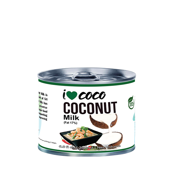 I Love Coco manufacture purely Organic Coconut Milk with 17% fat as a best and nutritional alternative to the general dairy products that are full of unhealthy fat. This coconut milk perfectly enrich your dishes and beverages with rich and milky lightness while attending to the health concerns of your diet plans as well. By processing under the firm quality assurance, from growing, harvesting, manufacturing, packing and delivering, we bring the best of Organic Sri Lankan Coconut Milk to the world.   Is Organic Coconut Milk Supposed To Be Thick? As a dairy free, gluten free, additives free, sugar free and any kind of preservatives free ingredient, coconut milk extracted from the coconut kernel is a thick, white creamy like liquid, yet not much watery. Although water is added to organic coconut milk extract to adjust the fat level to 17%, the exquisite, rich, tropical coconut flavor, aroma and the health benefits stay constant and same. Important information: As we do not use artificial chemicals, an opened can of organic coconut milk is best in use only for a maximum of 03 days. An unopened can expires within 24 months.   Storage: An unopened can should be kept in a cold, clean and a dark place at ambient temperature away from direct sunlight. Once opened, the can should be kept in refrigerator condition.   Usages: Coconut milk with 17% fat is used in diet recipes. As it is consisted of 100% organic fresh coconut kernel and water to adjust the fat to 17%, it is healthy substitute for dairy milk as concerned by vegans.   Specifications A cans of our organic and fair trade coconut milk with 17% fat are free from preservatives, discolorations and any extraneous matter and are recommended for anyone concerned about their diet. The below mentioned are the chemical and physical standards of the product’s nutrition values per 100g.   Product, Nutrition and ingredient detail ORGANOLEPTIC PROPERTIES   Appearance: Light brown color, free from discolorations and extraneous matter Odor: Typical and characteristic to fresh coconut with coffee odor Taste: Typical and characteristic to fresh coconut taste with bitterness of coffee, creamy and sweetish Consistency: Liquid, more creamy like consistency floats to the top of the can