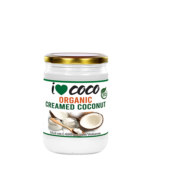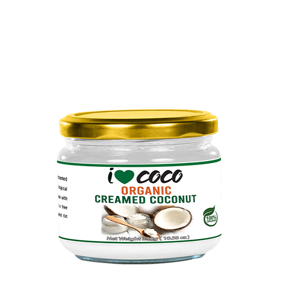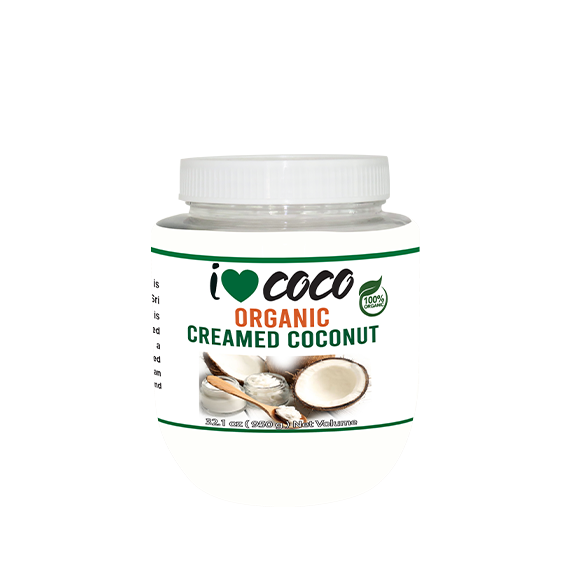 I Love Coco Organic and fair trade creamed is made from desiccated coconut flakes and free from discolorations and any extraneous matter. The below mentioned are the chemical and physical standards of product’s nutrition values per 100g.