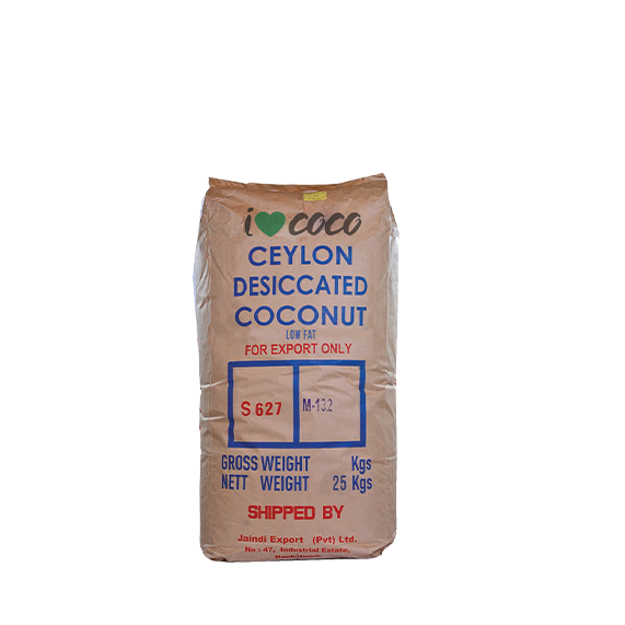 Storage: Low fat desiccated coconut should be stored in a cool, clean and dry place away from direct sunlight, odors and chemicals under a room temperature between 26oC to 32oC.